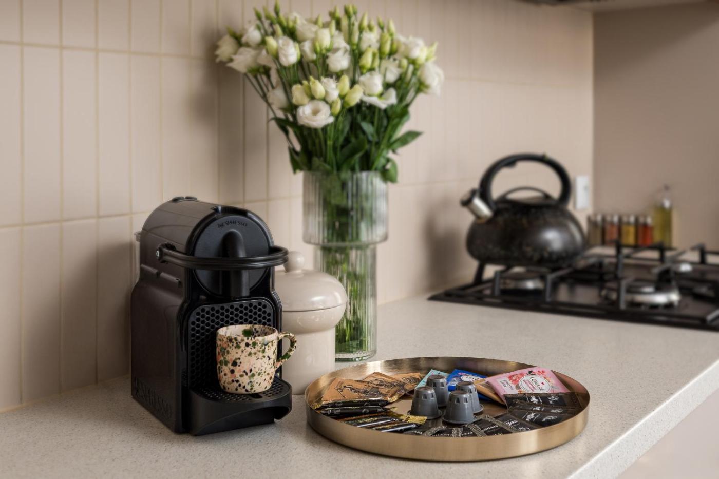 Oferta apartamentu obejmuje kilka sypialni (2), salon, kuchnię z pełnym wyposażeniem, w tym lodówką i ekspresem do kawy, a także łazienkę (1) z wanną oraz bezpłatnym zestawem kosmetyków. W apartamencie zapewniono ręczniki i pościel.